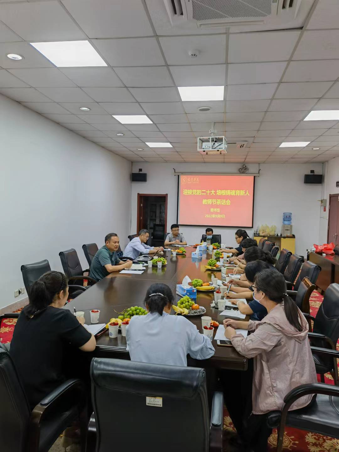 为了庆祝第38个教师节,9月9日上午,图书馆在二楼会议室召开教师节茶话会,中共党员代表、民主党派代表、群众代表参加了会谈,会议由图书馆馆长李明善主持。