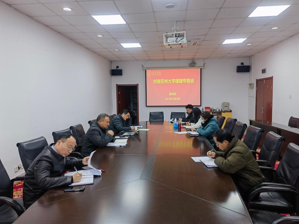 图书馆召开月度重点工作布置会 作者:刘敏编辑:刘家雷 审核:李明善 时间:2023-02-28 为提前谋划好3月份的重点工作,2月28日上午,图书馆在二楼会议室召开馆务会,全体馆务会成员参加会议,李明善馆长主持会议。 会议重点研究了对接苏州大学援建工作和本科教学合格评估迎评工作。李明善馆长对进一步深入推进对接苏州大学援建工作进行了详细的安排部署,确定了外出学习调研的活动计划。李明善馆长强调要以高度的责任心、使命感和紧迫感做好本科教学合格评估重点工作,要以迎接合格评估为契机全面提升图书馆的各项工作,充分体现以评促建、以评促改、评建结合的指导方针。 会议还研究了书香校园建设等工作。