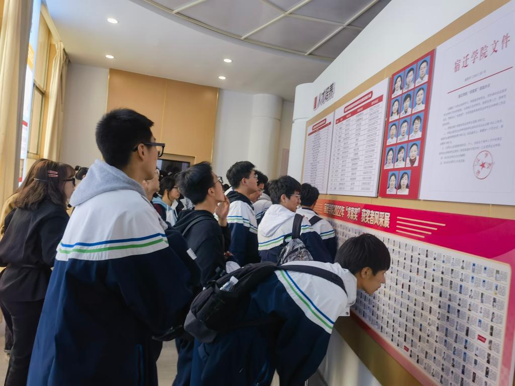 大手牵小手 共铸大学梦 作者:刘敏编辑:刘家雷 审核:李明善 时间:2023-03-25 3月25日下午,宿迁市第一高级中学高二年级师生代表一行300余人来到图书馆参观,开启了一场与图书馆的亲密接触。师生们在志愿者的带领下兴致勃勃地参观了校史室和阅览室,观看了新校区景观图,近距离感受大学文化氛围和书香气息。 本次活动是“我与宿院的美丽邂逅--生源高中学子走进宿院”系列活动之一,也是图书馆开展社会服务和加大文化辐射力度的生动实践。