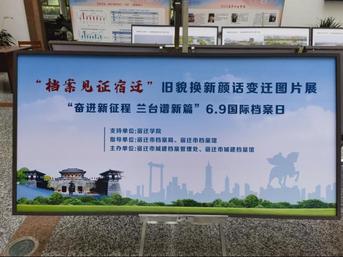 为庆祝第16个国际档案日,6月9日,宿迁市城建档案管理处、宿迁市城建档案馆联合我校在图书馆一楼大厅举办“档案见证宿迁”旧貌换新颜话变迁图片展活动。