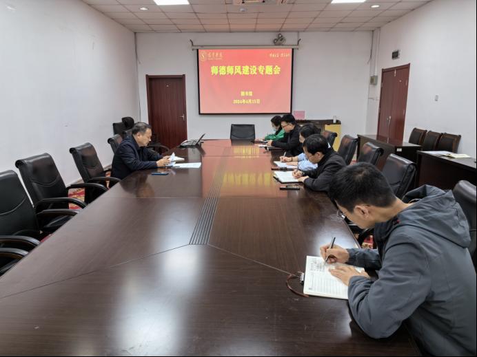4月15日下午,图书馆在二楼会议室召开师德师风建设专题会议,会议由图书馆馆长李明善主持,馆务会全体成员参加。