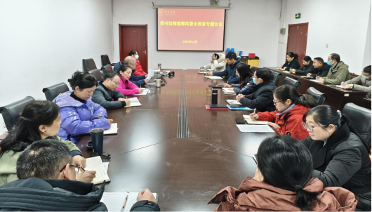 师德师风主题教育工作会上,教辅党总支书记、图书馆副馆长沈道波对全体参会人员进行师德师风警示教育。要求全体人员要时刻牢记教训,谨言慎行、戒骄戒躁,做一个尊师重道的合格馆员,共建图书馆良好风尚。