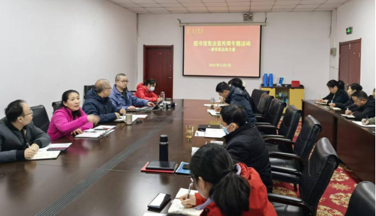 宪法宣传教育工作会上,刘文馆长首先带领大家一同观看了法治宣传片,指出作为一名高校图书馆工作人员,我们每一个人都要积极响应国家号召,持续学习法律知识,牢固树立法治观念,坚定遵守法治规则,当好中国法治建设的践行者,为学生做表率,为图书馆争光彩。
