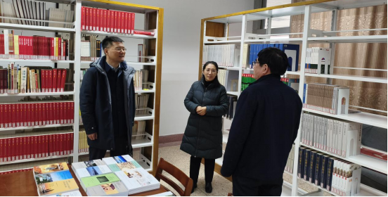 范校长一行先后走访了国学馆、地方文献室、红色文化书屋等特色区域。在走访过程中,范校长仔细查看了各区域功能布局、馆藏资源建设及日常管理运行情况,认真听取相关负责人的现场介绍,详细询问资源利用效率、读者服务保障等重点问题,并与工作人员亲切交流,深入了解一线工作开展情况。