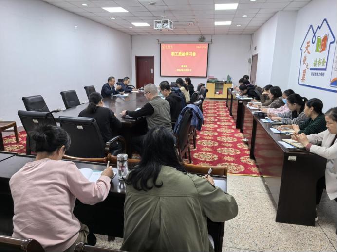 10月18日下午,图书馆在二楼会议室召开全体职工政治学习会。图书馆全体职工参加会议,会议由图书馆馆长李明善主持。