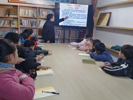 活动中,天使之翼读书会创办人、志愿者冯克品向孩子们介绍了阅读推广活动的意义,并带领孩子们学习了《今日歌》《明日歌》和《三字经》等,教导孩子们要珍惜时间,抓住当下的美好时光,努力做到“今日事,今日毕”。活动最后,冯克品还为孩子们领读本土作家胡继风儿童文学作品《哪天才能长大呦》,并结合“水底的‘蝴蝶’”一节中的内容,给孩子们讲解了“排比”修辞手法的运用,引导孩子们举例练习,深化应用。