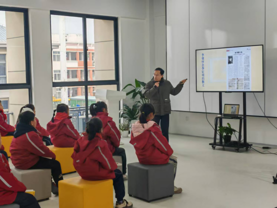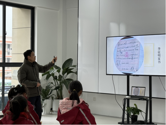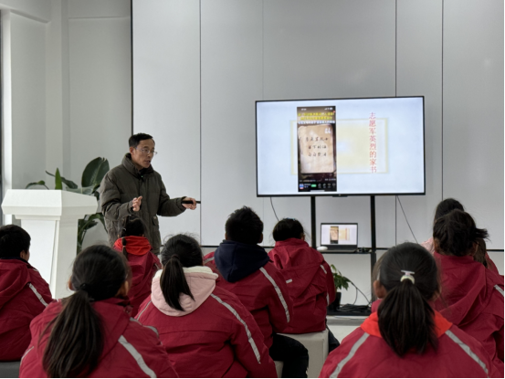 这次活动以“《鸭绿江来信》的书里书外”为主题,参加活动的孩子是曹集中心学校四年级的20个孩子。活动中,冯老师从贴近儿童的视角介绍了宿迁本土作家胡继风新作《鸭绿江来信》的创作缘起和历程、创作意图,从图书封面到目录,从正文到后记,简要说明了此书的基本内容,强调了“后记”对于阅读这本书的重要性。活动过程中,冯老师从介绍抗美援朝战争到播放志愿军战歌,从展示李征明烈士照片到更多烈士的家书,从书中人物到书外原型,从烈士写信到家人读信,从亲情到爱情,从战友到战俘,一一道来,激发孩子们的阅读兴趣。在互动环节,冯老师引导孩子们在阅读中理解伟大的抗美援朝精神,明白抗美援朝战争胜利对于中国社会主义国家建设与发展的意义,激励孩子们好好学习,努力成人成才,报效国家。