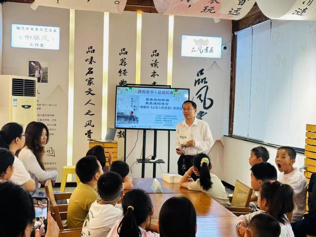6月28日上午,图书馆天使之翼读书会创办人冯克品老师到宿豫区袁家村品风书屋举办《云朵上的爸爸》赏读会活动。来自宿豫区和宿城区的近30名学生及其家长参加活动。